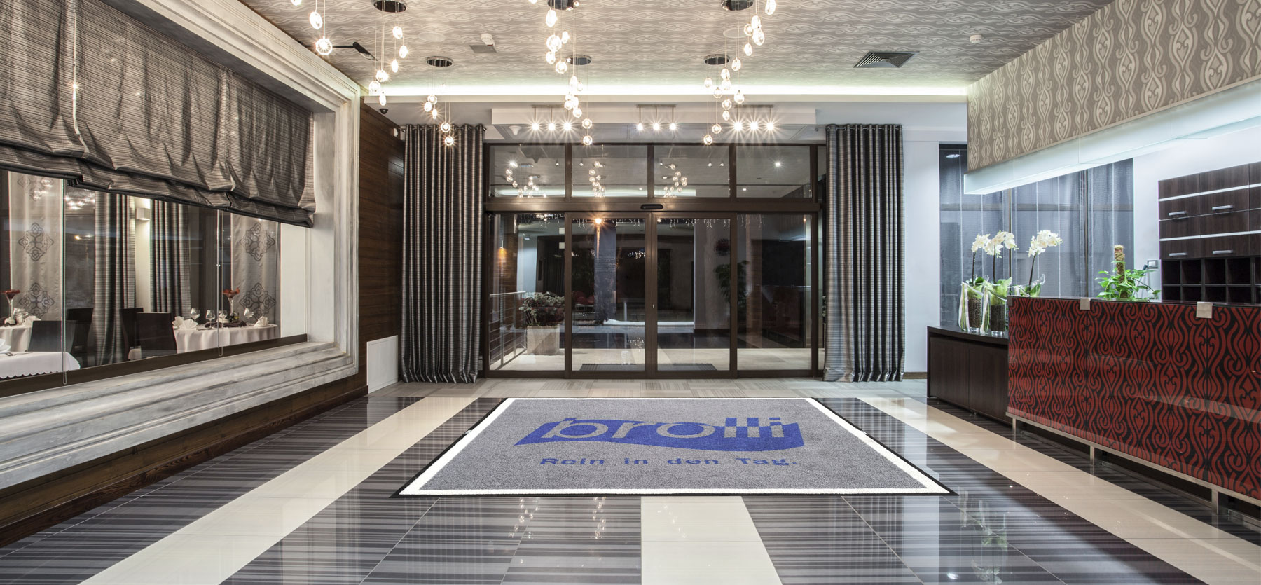 Für den ersten Eindruck gibt es keine zweite Chance. Die Brolli-Schmutzstoppmatten sorgen – optisch ansprechend – für den perfekten Ersteindruck, halten Schmutz, Staub und Feuchtigkeit fern und minimieren den Reinigungsaufwand. Unterschiedliche Materialien, Designs und Servicekomponenten entsprechen den individuellen Anforderungen im Industrie-, Arbeits- und Empfangsbereich. Von der Schmutz- und Rutschfestigkeit über die Miet- oder Kaufoption bis zur werbewirksamen Optik in Ihrem Firmendesign. Damit sich Ihre Mitarbeiterinnen und Mitarbeiter sicher, Sie sich optimal betreut und Ihre Kunden willkommen fühlen.